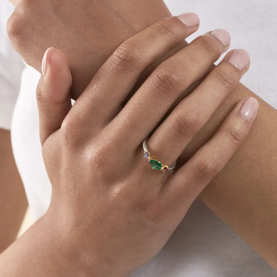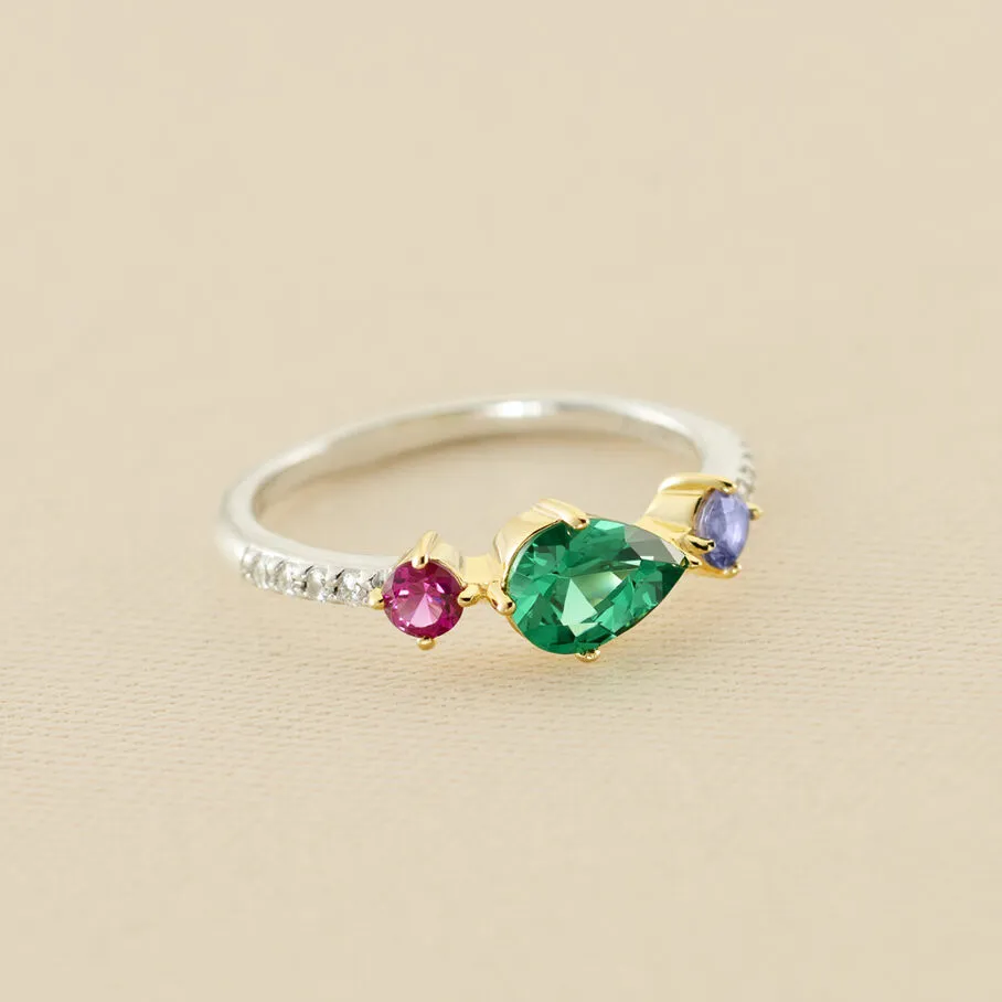 Bague fine pavée, en argent véritable doré 750/1000, sertie d’oxydes de zirconium multicolores, de différentes tailles et formes