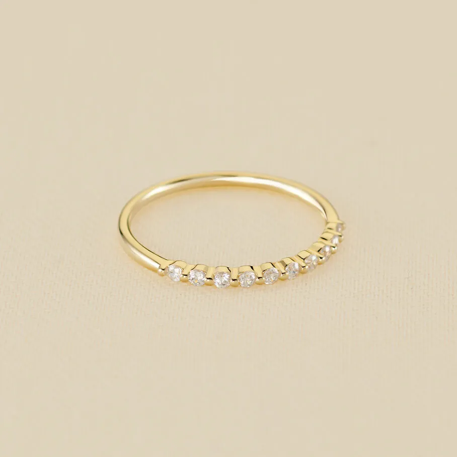 Bague, en argent plaqué or, sur laquelle ont été sertis clos une série d’oxydes de zirconium