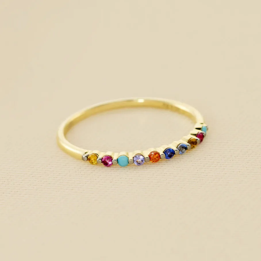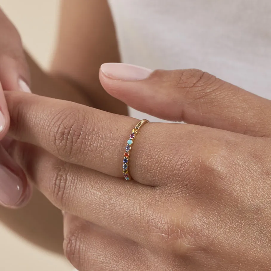 Bague, en argent plaqué or, sur laquelle ont été sertis clos une série d’oxydes de zirconium