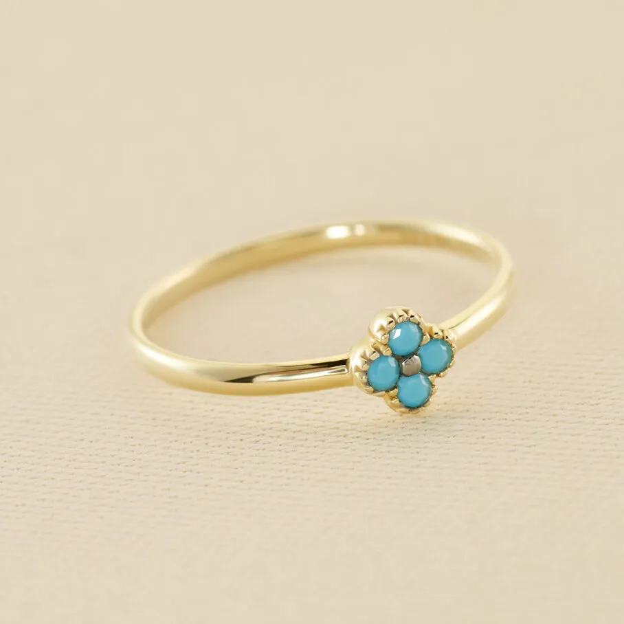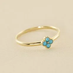 Bague, en argent plaqué or, montée d’une fleur d’oxyde de zirconium dont le pourtour est réalisé avec un fin graineti