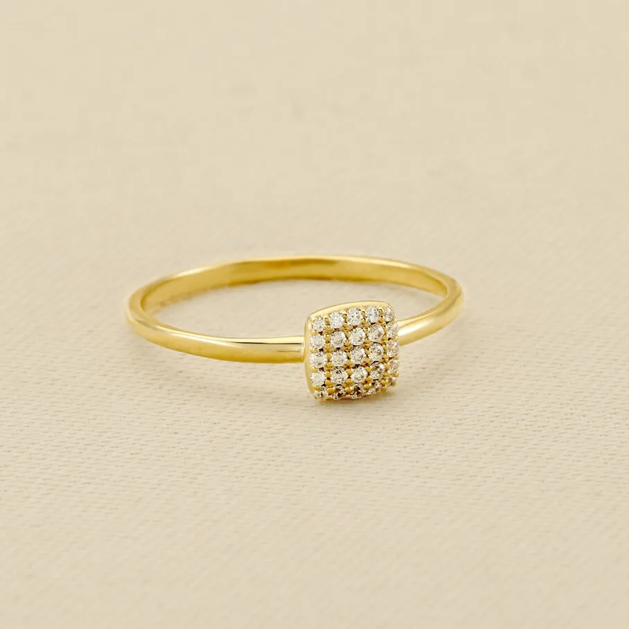 Bague fine, en argent véritable avec une couche d’or, avec un ornement de forme coussin et pavé d’oxydes de zirconium