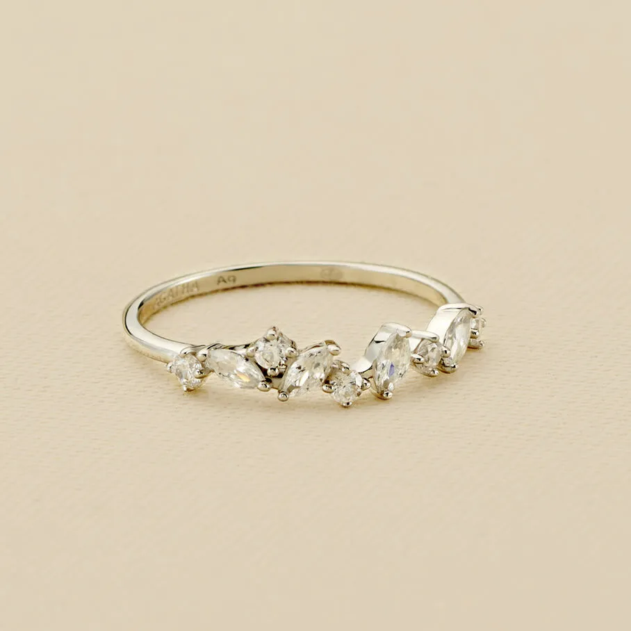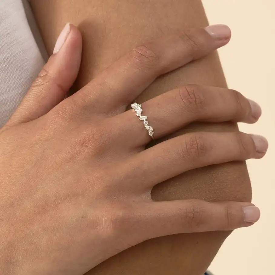 Bague fine, en argent véritable, sertie d’oxydes de zirconium et d’oxydes de forme marquise