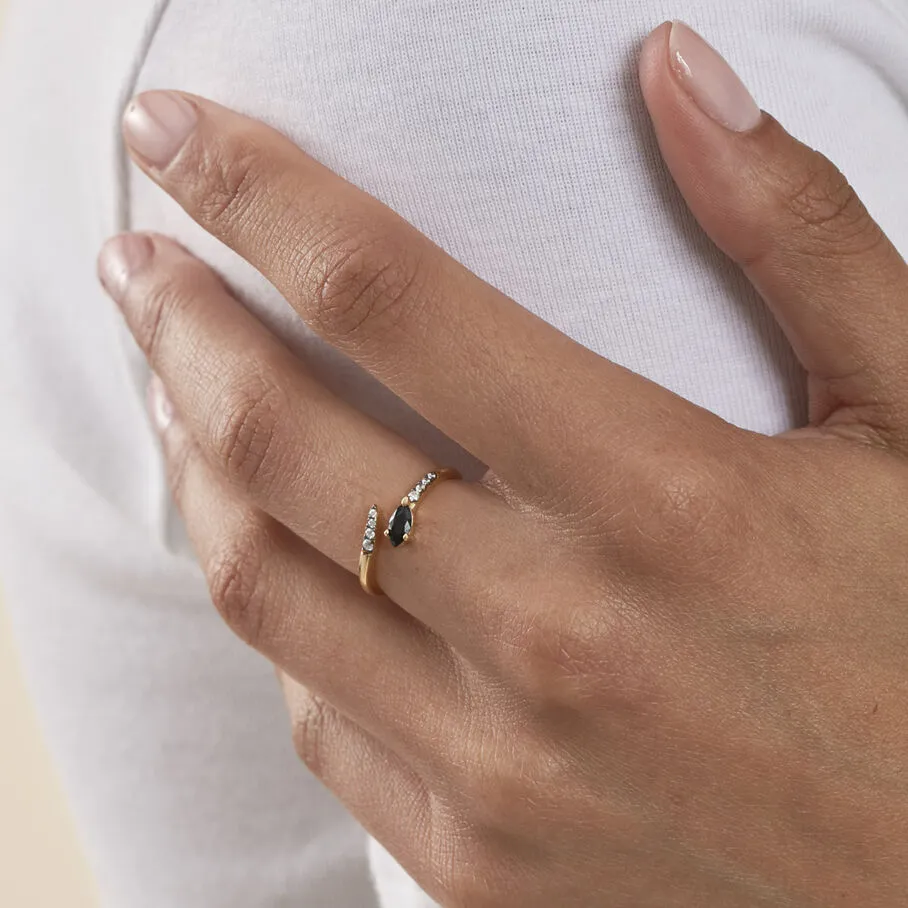 Bague ouverte en argent véritable doré 750/1000, en forme de serpent pavée d’oxydes de zirconium