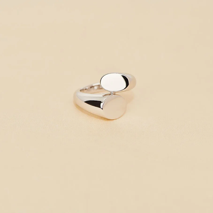 Bague toi& moi, en argent véritable, avec des extrémités planes. Un design qui donnera du volume à vos mains !