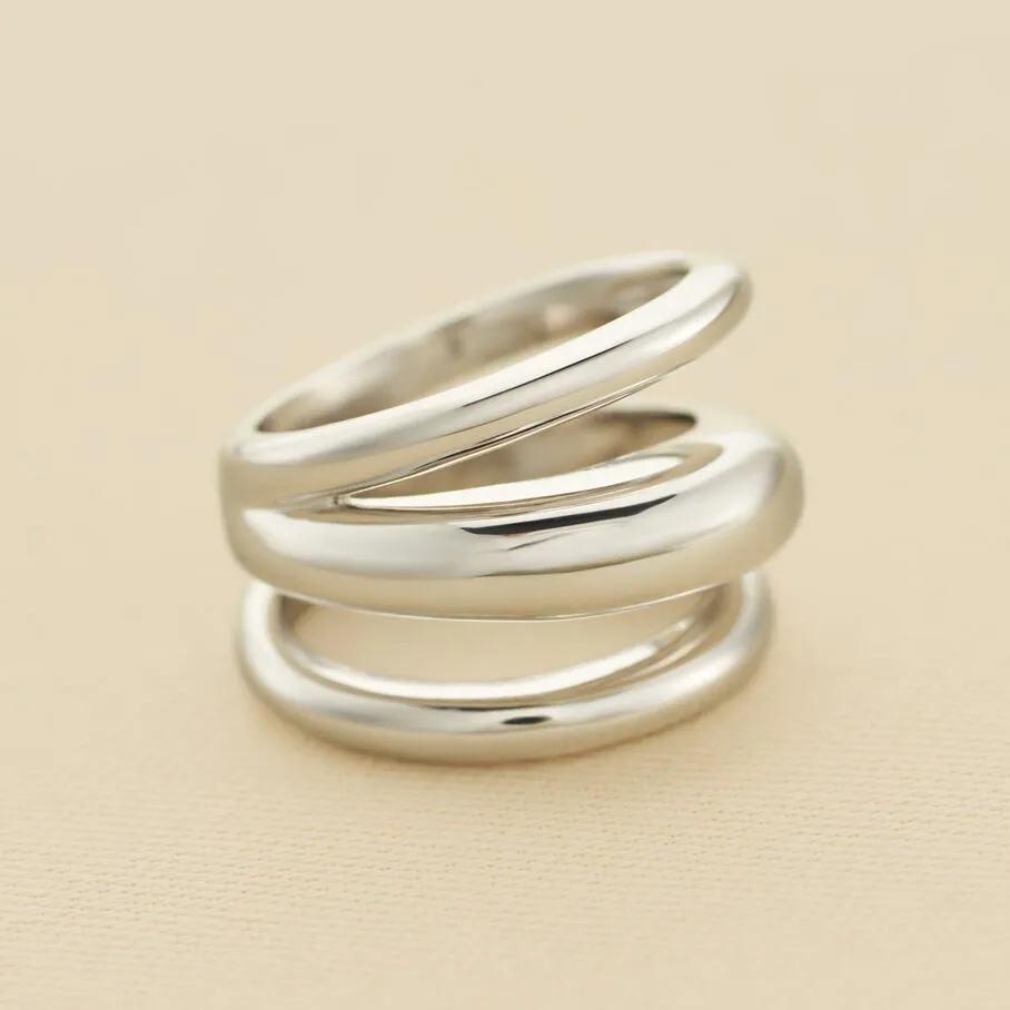 Bague large en argent véritable formée de trois anneaux bombés