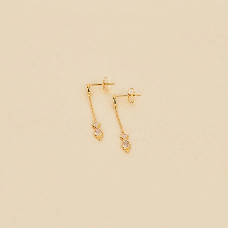 Boucles d’oreilles en laiton doré 750/1000, chaine et oxydes de zirconium