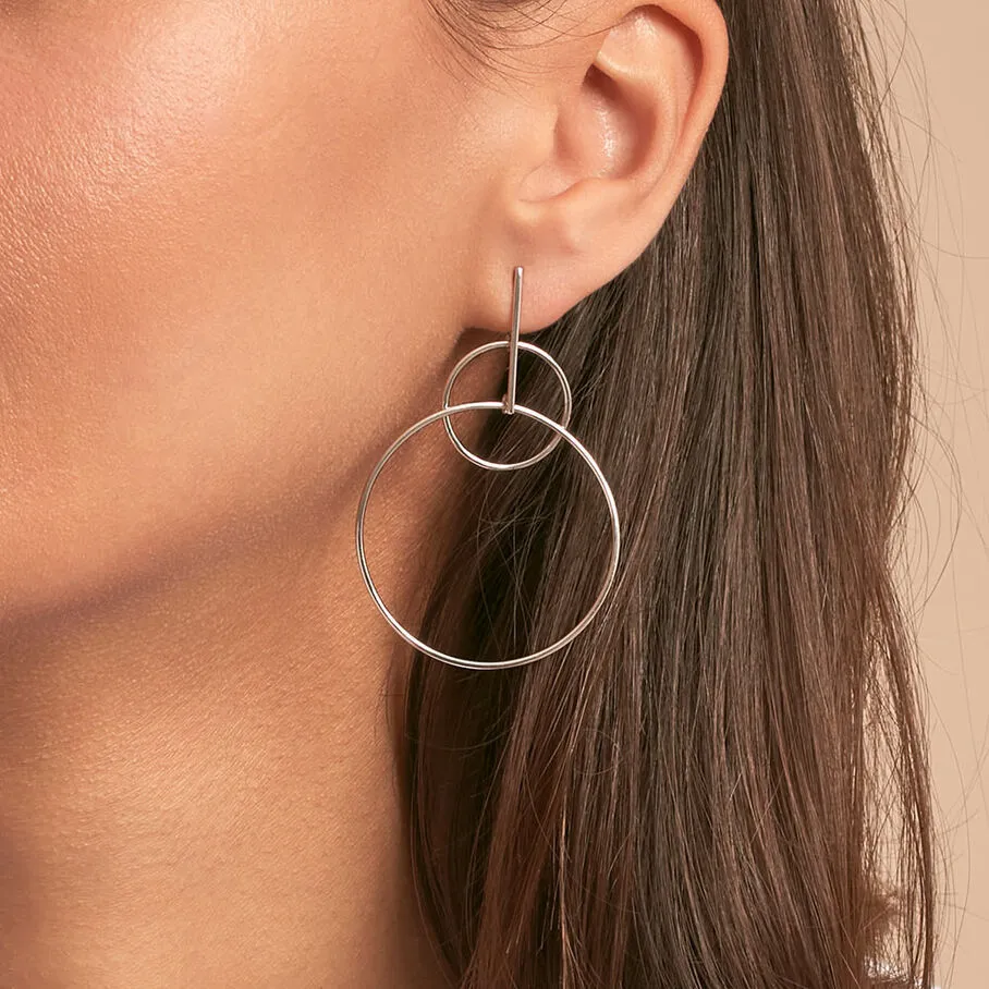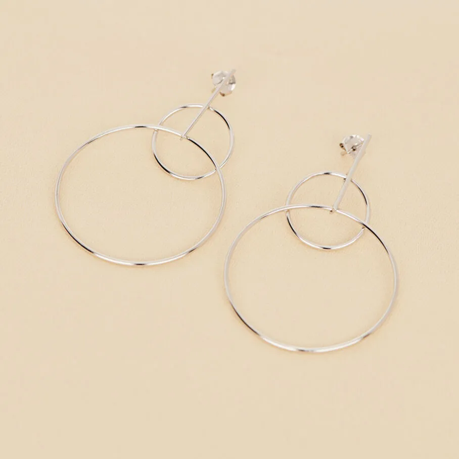 Boucles d’oreilles en argent véritable formées d’un jeu graphique de cercles évidées entrelacées et de tiges