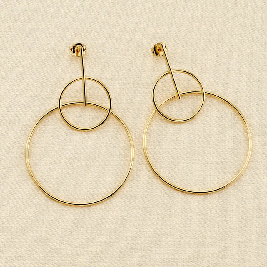 Boucles d’oreilles en argent véritable doré 750/1000, formées d’un jeu graphique de cercles évidées entrelacées et de tiges