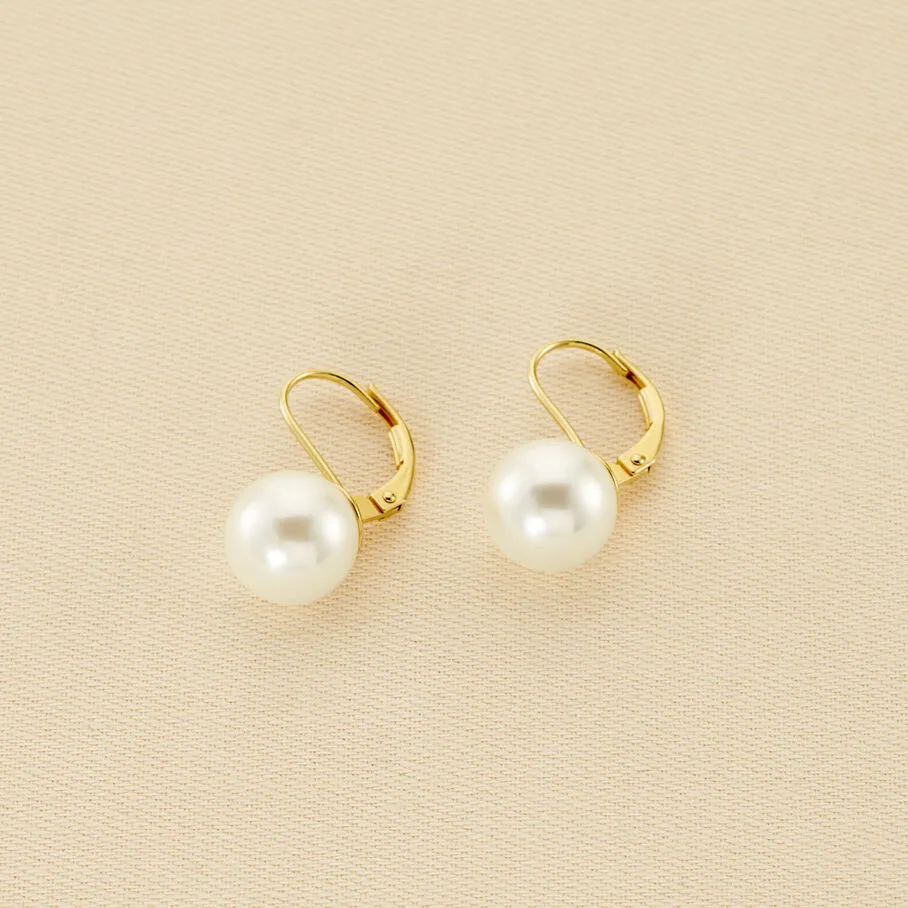 Boucles d’oreilles dormeuses, en argent véritable dorées 750/1000, ornées de perles de culture de 10 mm de diamètre