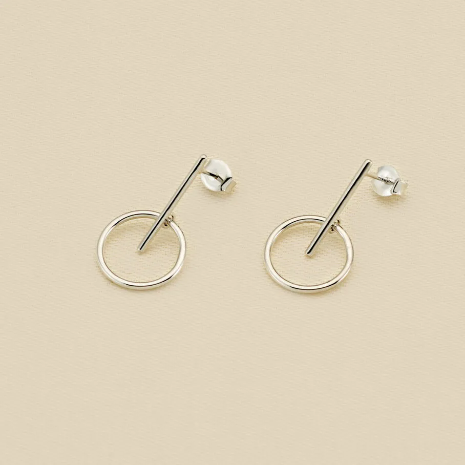 Boucles d’oreilles mi-longues, en argent véritable, composées d’un anneau évidé sur une barre