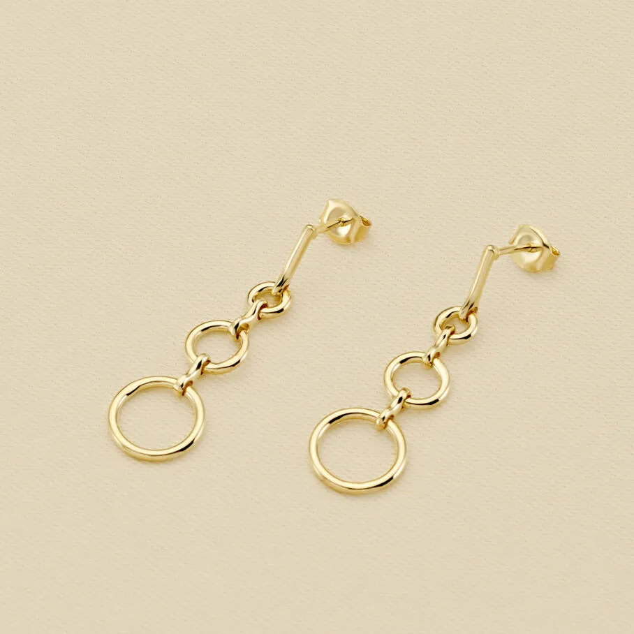 Boucles d’oreilles mi-longues, en argent véritable doré 750/1000, composées d’un dégradé de trois anneaux évidés