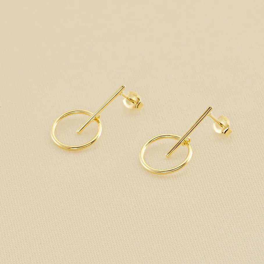 Boucles d’oreilles mi-longues, en argent véritable doré 750/1000, composées d’un anneau évidé sur une barre