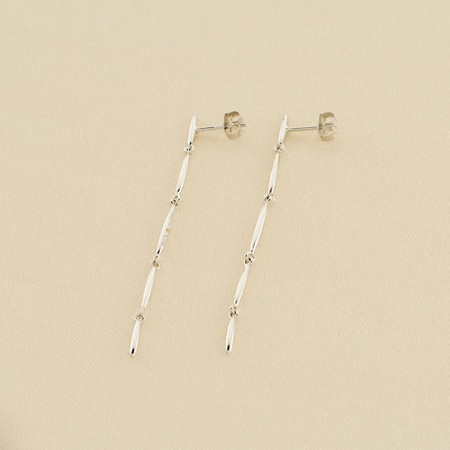 Boucles d’oreilles linéaires, en argent véritable 925/1000, composées de cinq maillons au motif rayon de soleil.