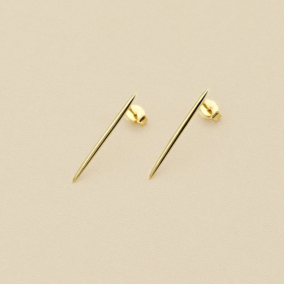 Boucles d’oreilles linéaires, en argent véritable 925/1000 et dorées 750/1000, au motif rayon de soleil.