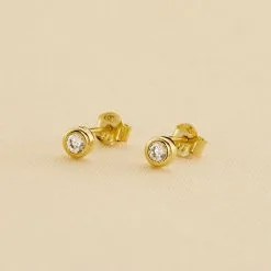Boucles d’oreilles puces en argent véritable 925/1000, dorées 750/1000, ornées d’oxydes de zirconium sertis clos