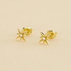Boucles d’oreilles étoiles en argent véritable dorées 750/1000 avec un oxyde de zirconium