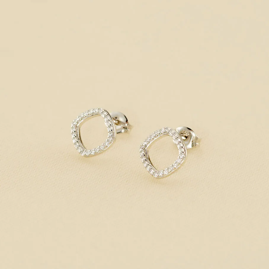 Boucles d’oreilles puces en argent véritable ornées de carrés évidés pavés d’oxydes de zirconium