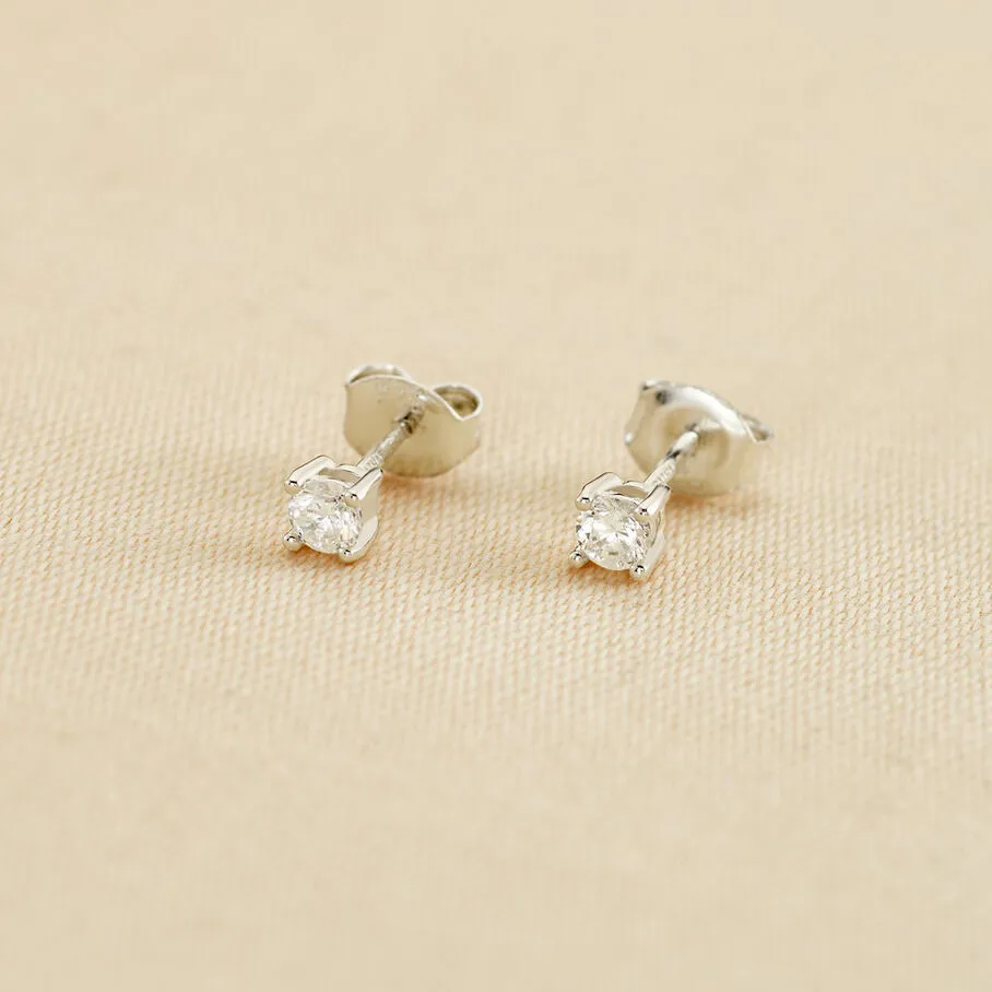 Boucles d’oreilles puces en argent véritable ornée d’oxydes de zirconium griffés de 3 mm