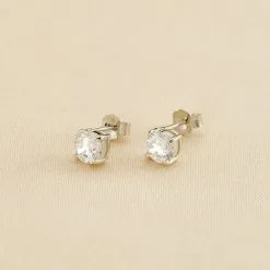 Boucles d’oreilles puces en argent véritable ornée d’oxydes de zirconium griffés de 4 mm