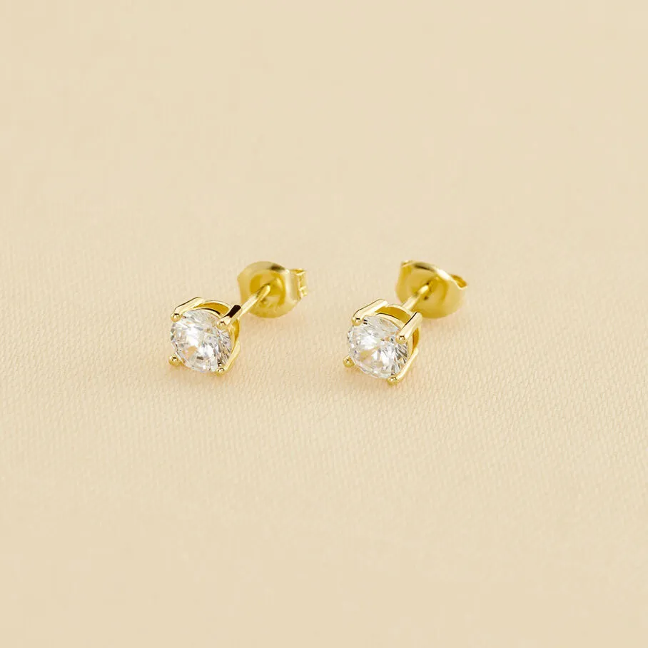Boucles d’oreilles puces, en argent véritable dorées 750/1000, ornées d’oxydes de zirconium griffés de 5 mm