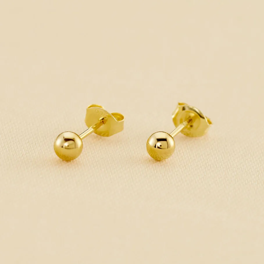 Boucles d’oreilles puces 4mm, en argent véritable dorées 750/1000, ornées d’une boule