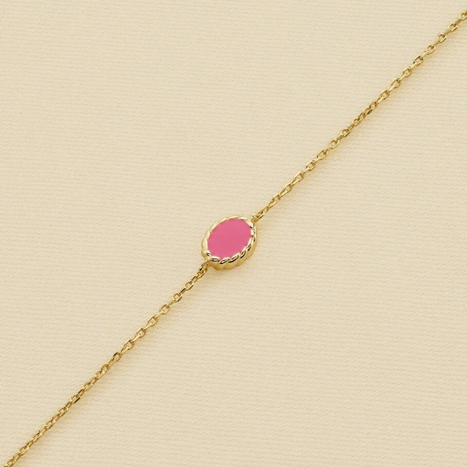 Bracelet maille, en argent véritable 925/1000 et doré 750/1000, orné d’un pendentif monté d’une pierre fine d’un côté et émaillé de l’aute côté. La torsade, véritable signature de la marque, est apportée en touche notamment sur la bordure du pendentif! Un bracelet au double porté pour accorder à son humeur et à ses tenues!
