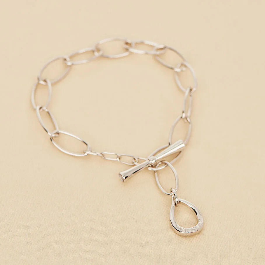 Bracelet souple, en laiton rhodié, composé de maillons ovales allongés