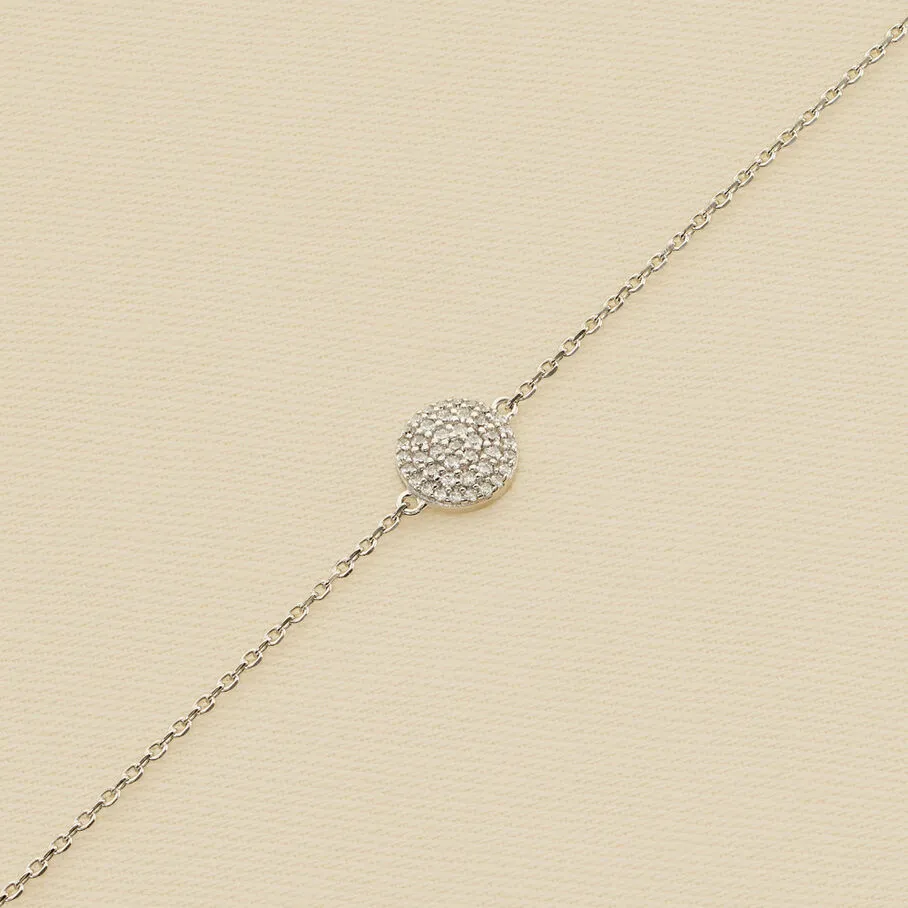 Bracelet souple en argent véritable orné d’une pastille pavée d’oxydes de zirconium