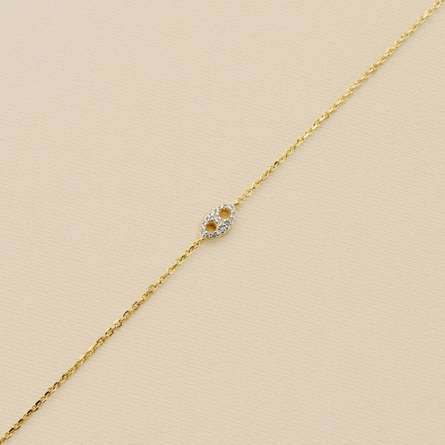 Bracelet, en argent véritable doré 750/1000, avec un grain de café pavé sur ruthénium, monté sur une fine chaine maille forçat