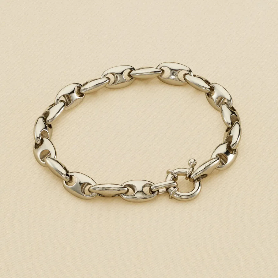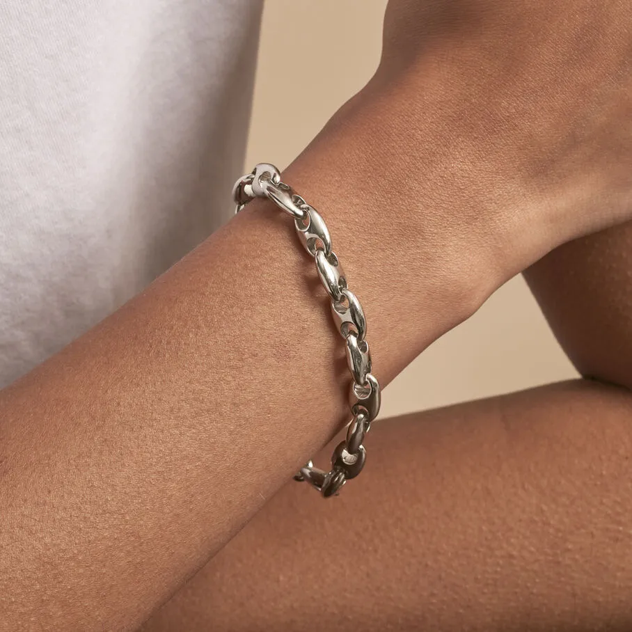 Bracelet souple en argent véritable, chaîne avec maillons en forme de grains de café.