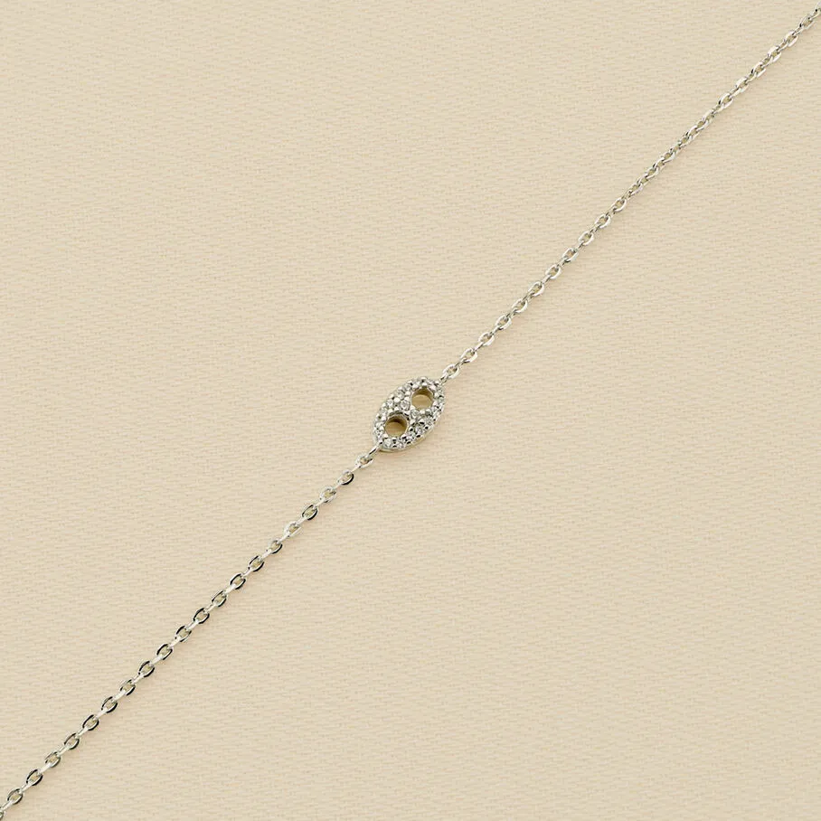 Bracelet, en argent véritable, avec un grain de café pavé monté sur une fine chaine maille forçat