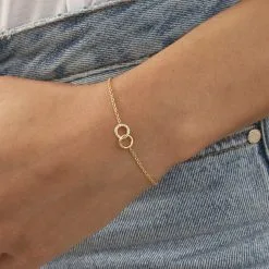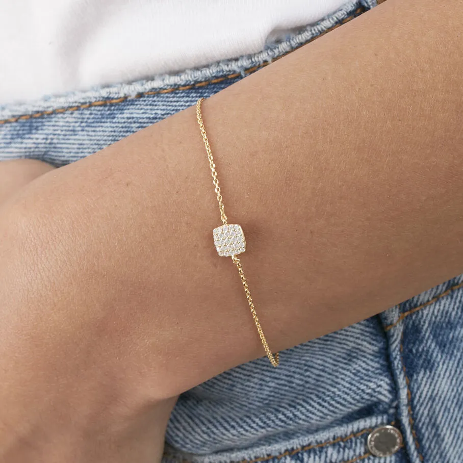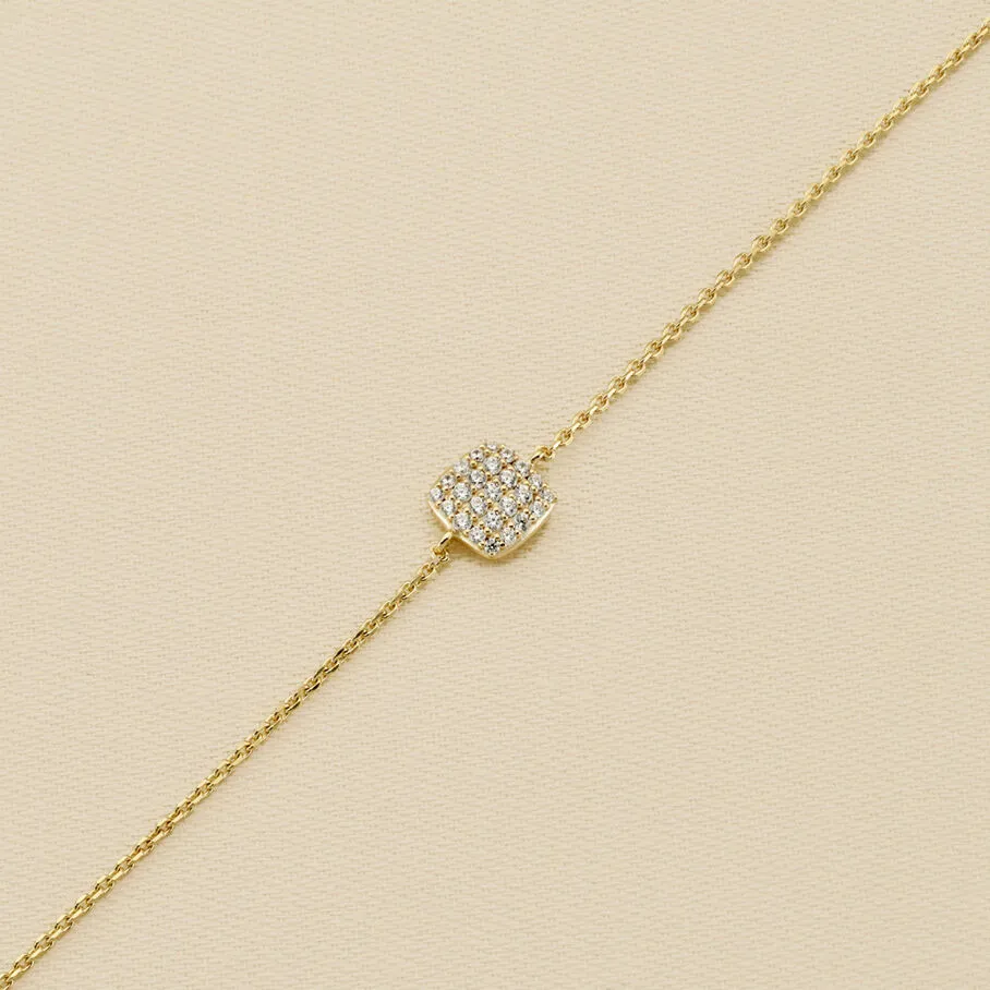 Bracelet chaine, en argent véritable doré 750/1000, avec un pendentif en forme de coussin serti d’oxydes de zirconium