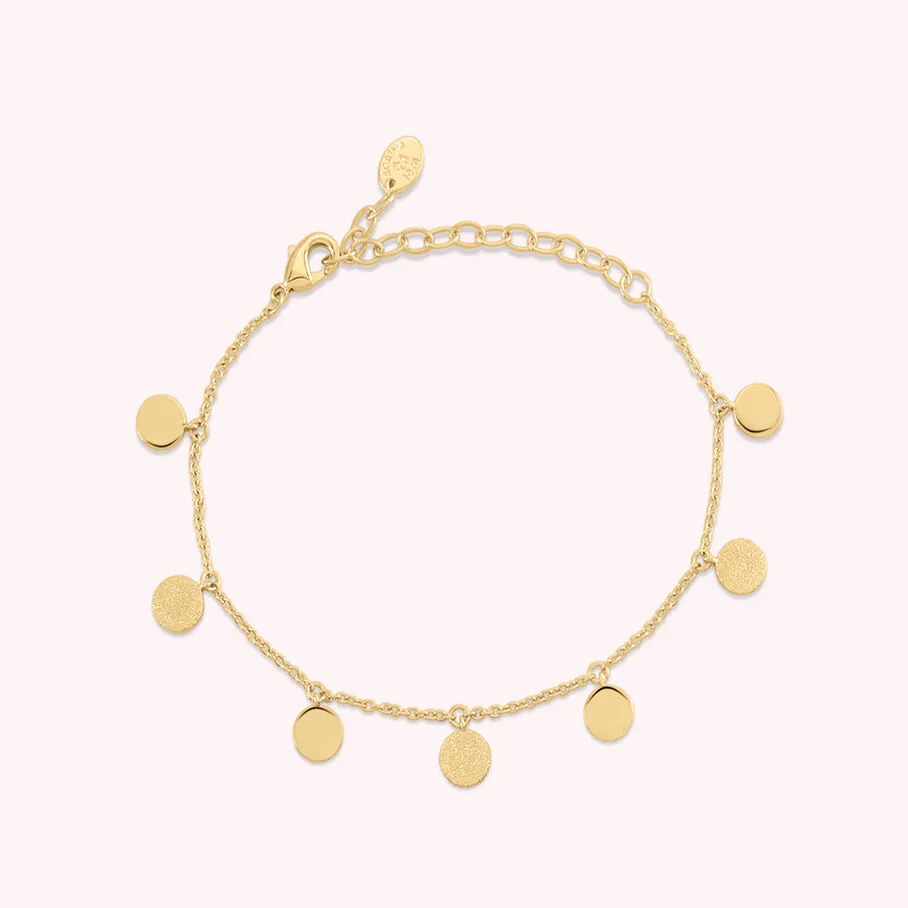 Bracelet, en laiton doré à l’or fin, fait de pastilles en pampille avec des finitions alternant entre un effet sablé brillant et un effet lisse