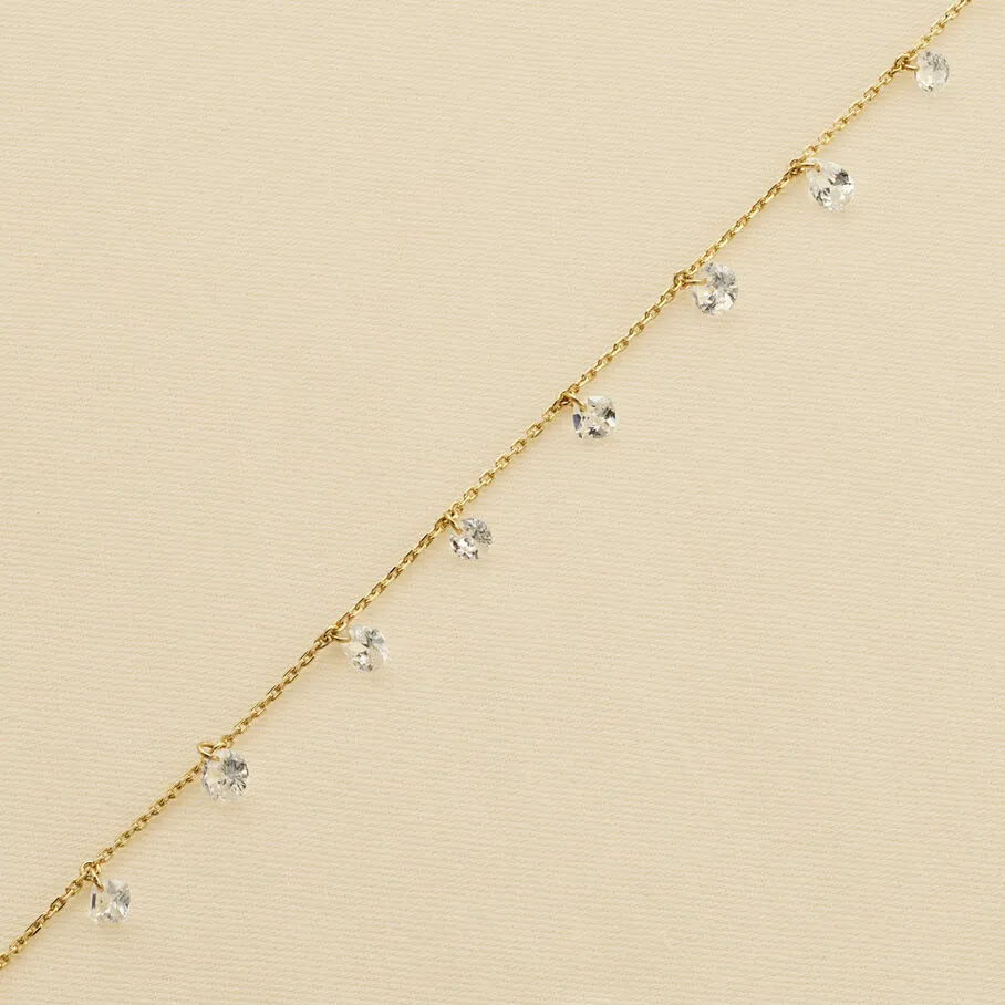 Bracelet fin, en argent véritable doré à l’or fin, avec des oxydes de zirconium percés, en pampille, en forme de poire, rond et coussin