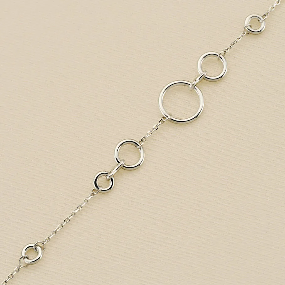 Bracelet, en argent véritable, avec une fine chaîne sur laquelle sont montés des anneaux évidés de différentes tailles