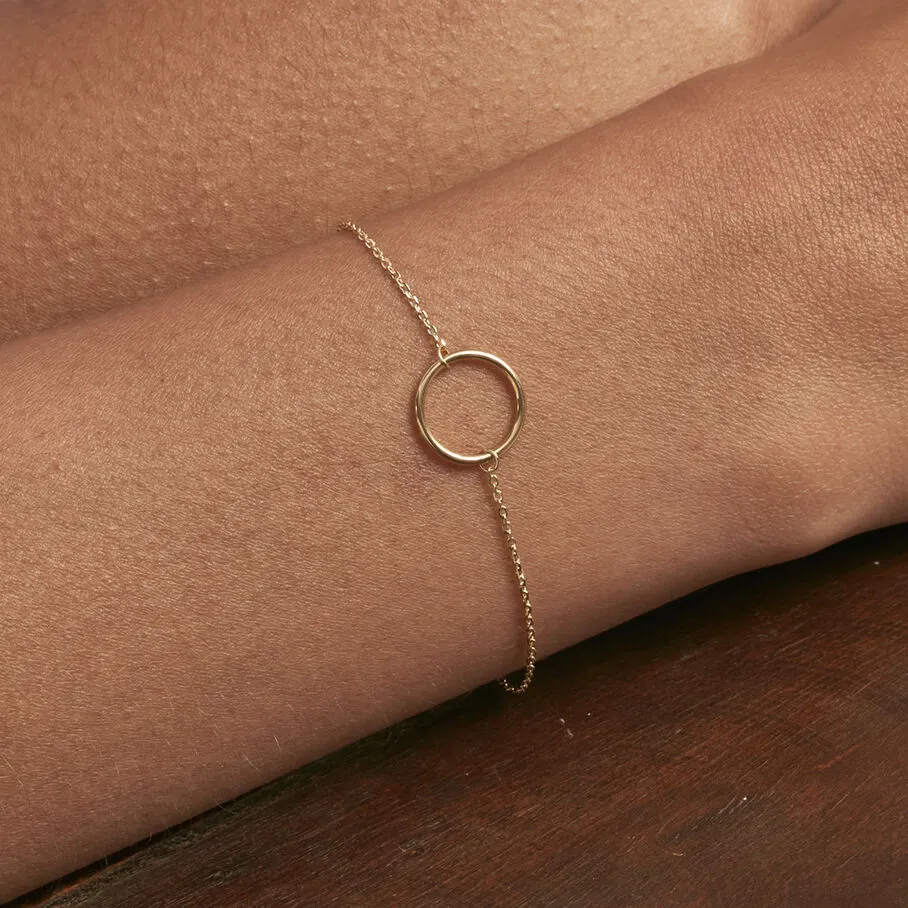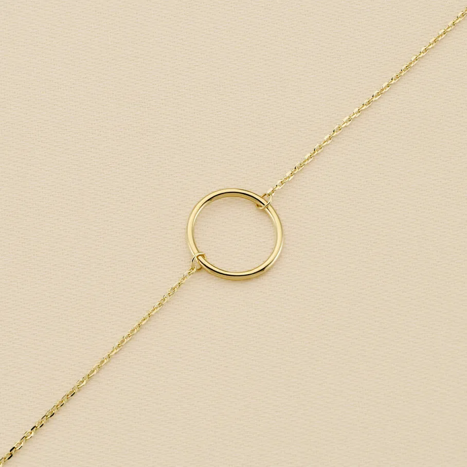 Bracelet, en argent véritable doré 750/1000, avec un anneau évidé monté sur une chaine fine