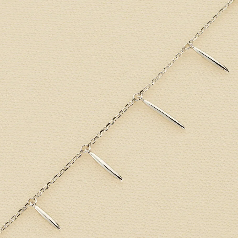Bracelet chaine fine, en argent 925/1000, orné de cinq pampilles rayonnantes.