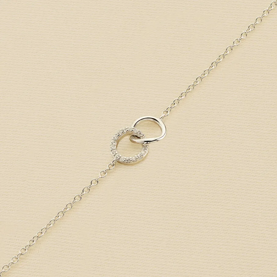 Bracelet souple en argent véritable orné de deux anneaux entrelacés dont un pavé d’oxydes de zirconium