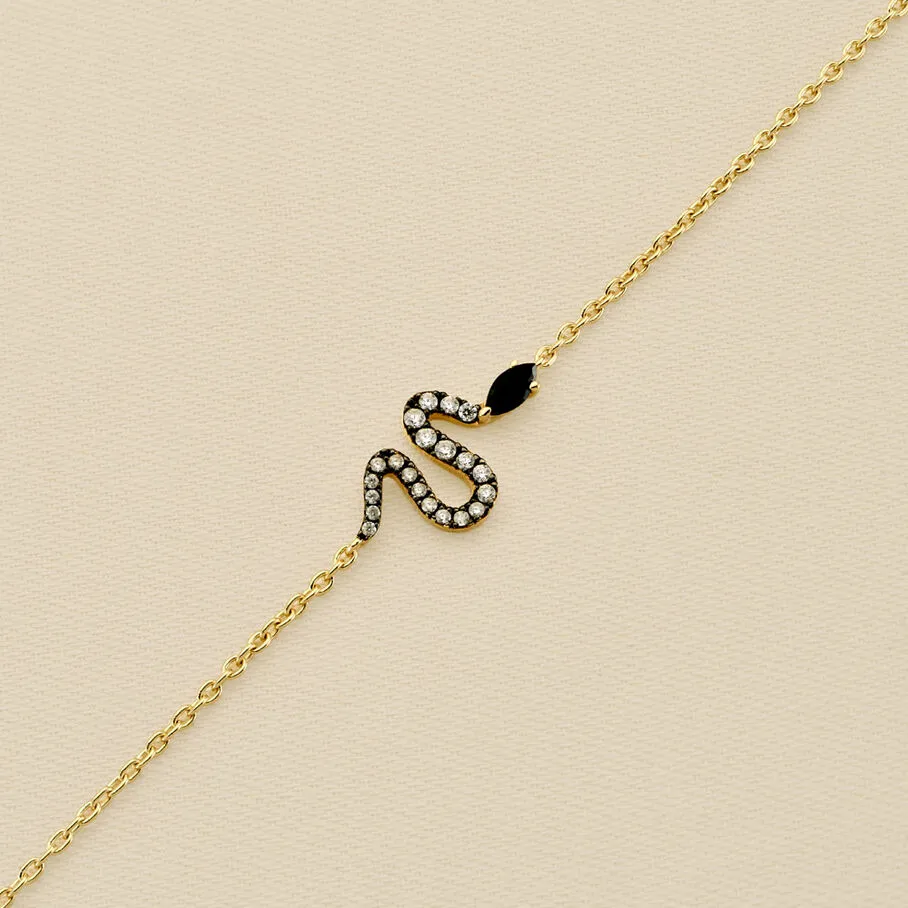 Bracelet souple en argent véritable doré 750/1000, orné d’un serpent pavé d’oxydes de zirconium