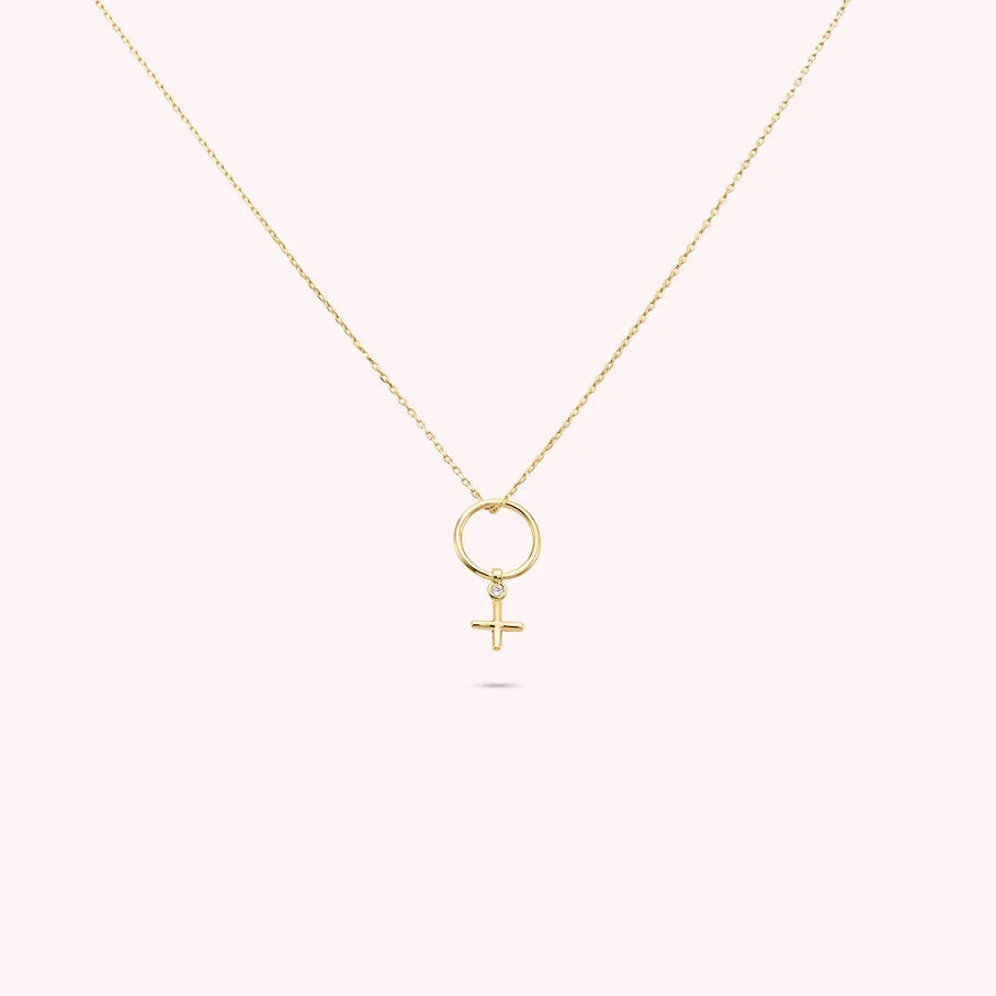 Collier court, en laiton doré 750/1000, symbole de la femme en pendentif avec un oxyde de zirconium