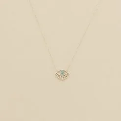 Collier mi-long, en argent véritable 925/1000, dont la fine chaine maille forçat est ornée d’un pendentif en forme d’œil turc. L’iris émaillé et le contour de l’œil serti d’oxydes de zirconium apportent un vrai raffinement et éclat au produit!