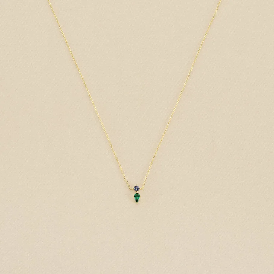 Collier court, en argent véritable doré 750/1000, avec des oxydes de zirconium multicolores en pendentif