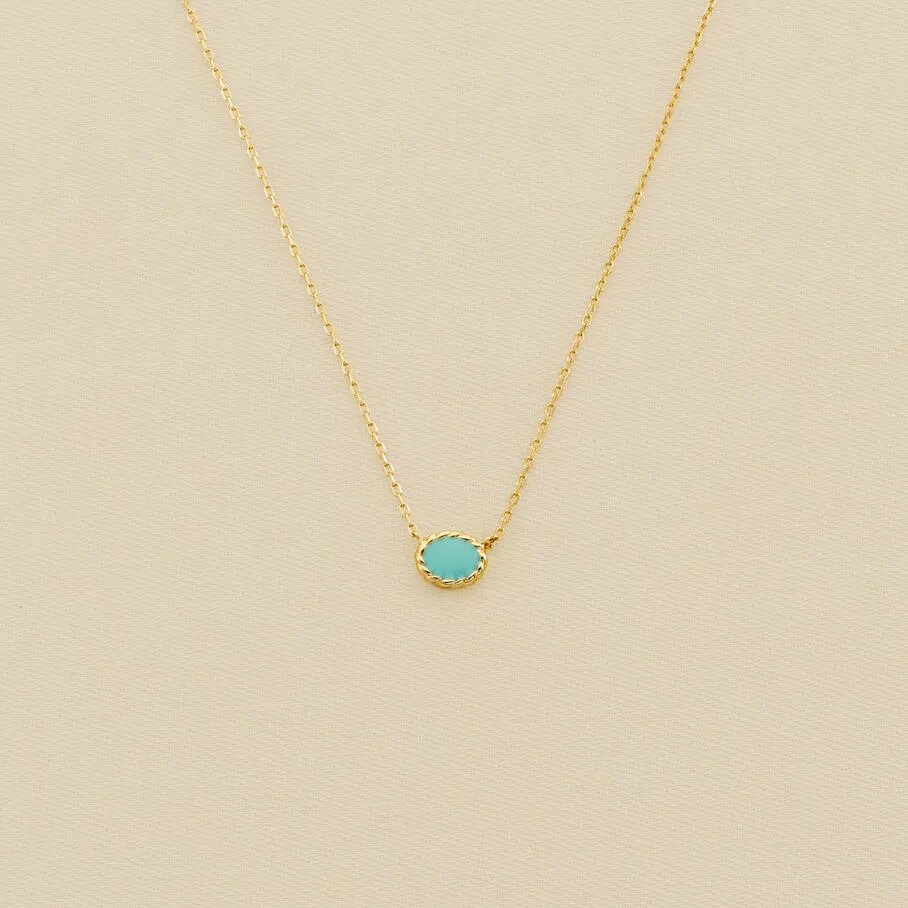 Collier court, en argent véritable 925/1000 et doré 750/1000, orné d’un pendentif monté d’une pierre fine d’un côté et émaillé de l’aute côté. La torsade, véritable signature de la marque, est apportée en touche notamment sur la bordure du pendentif! Un collier au double porté pour accorder à son humeur et à ses tenues!