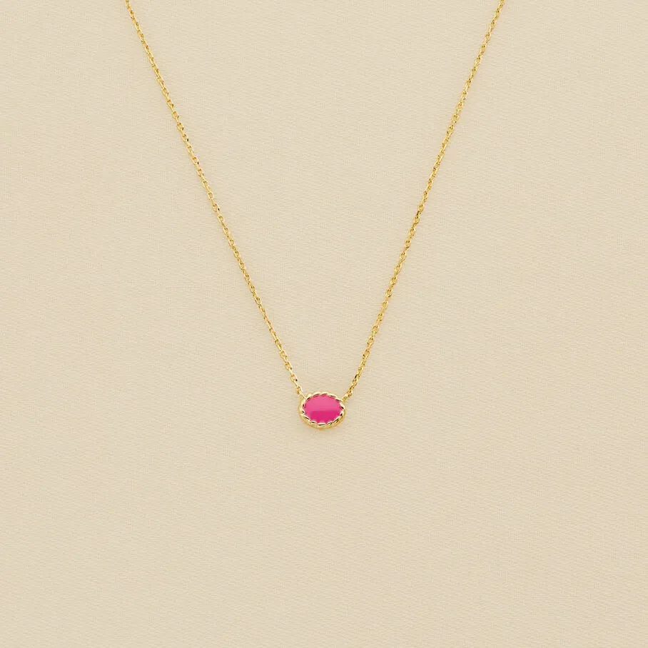 Collier court, en argent véritable 925/1000 et doré 750/1000, orné d’un pendentif monté d’une pierre fine d’un côté et émaillé de l’aute côté. La torsade, véritable signature de la marque, est apportée en touche notamment sur la bordure du pendentif! Un collier au double porté pour accorder à son humeur et à ses tenues!