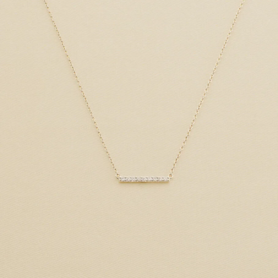 Collier court en argent véritable orné d’une petite barre rigide pavée d’oxydes de zirconium