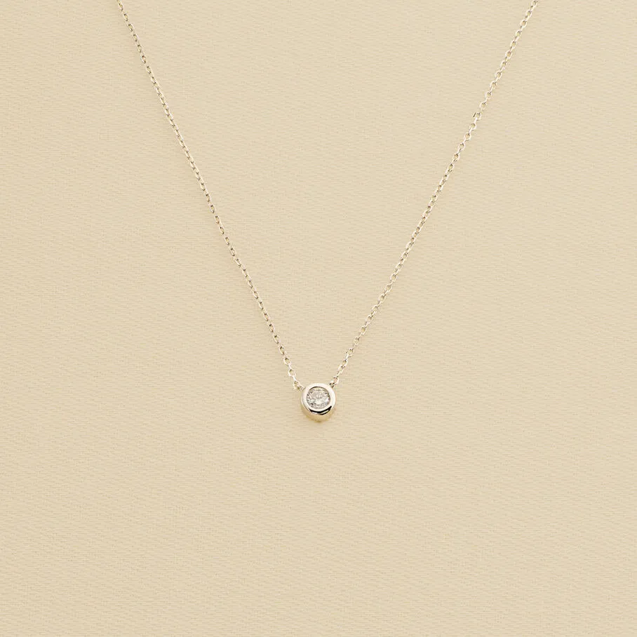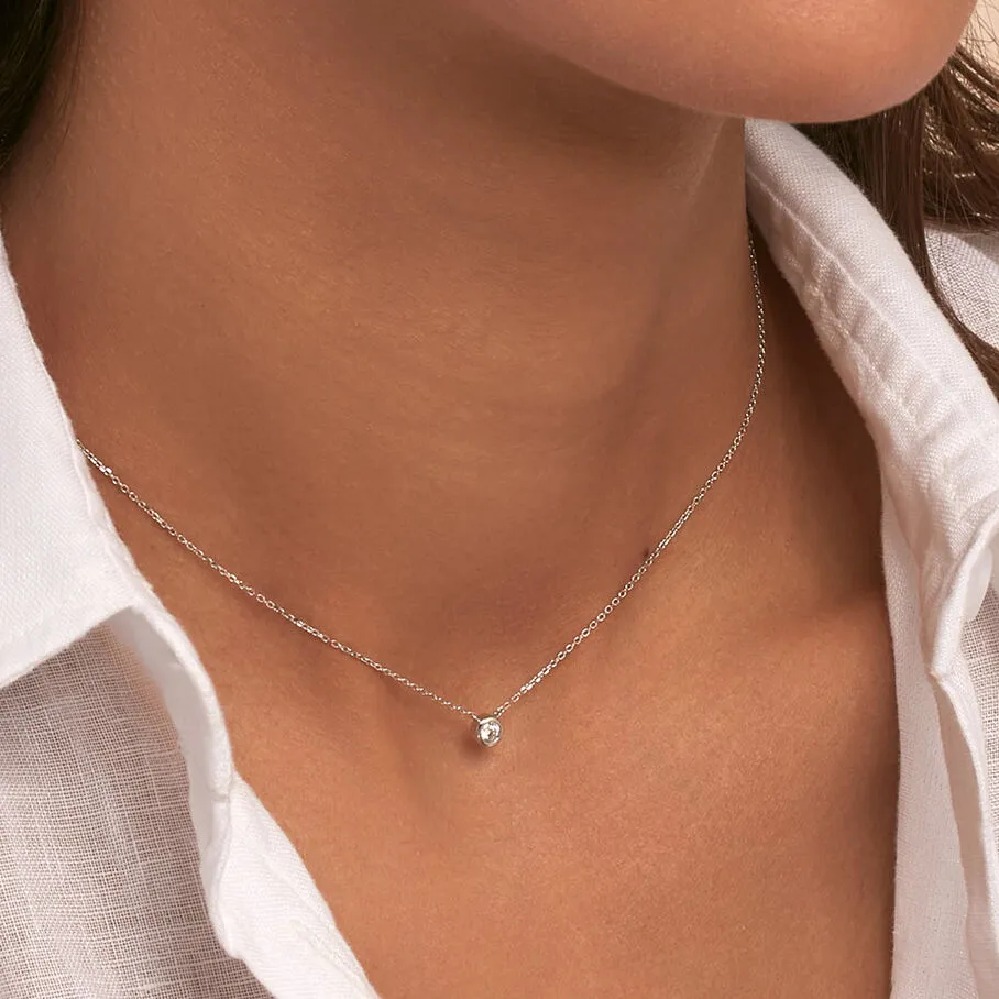 Collier court en argent véritable orné d’un oxyde de zirconium serti clos
