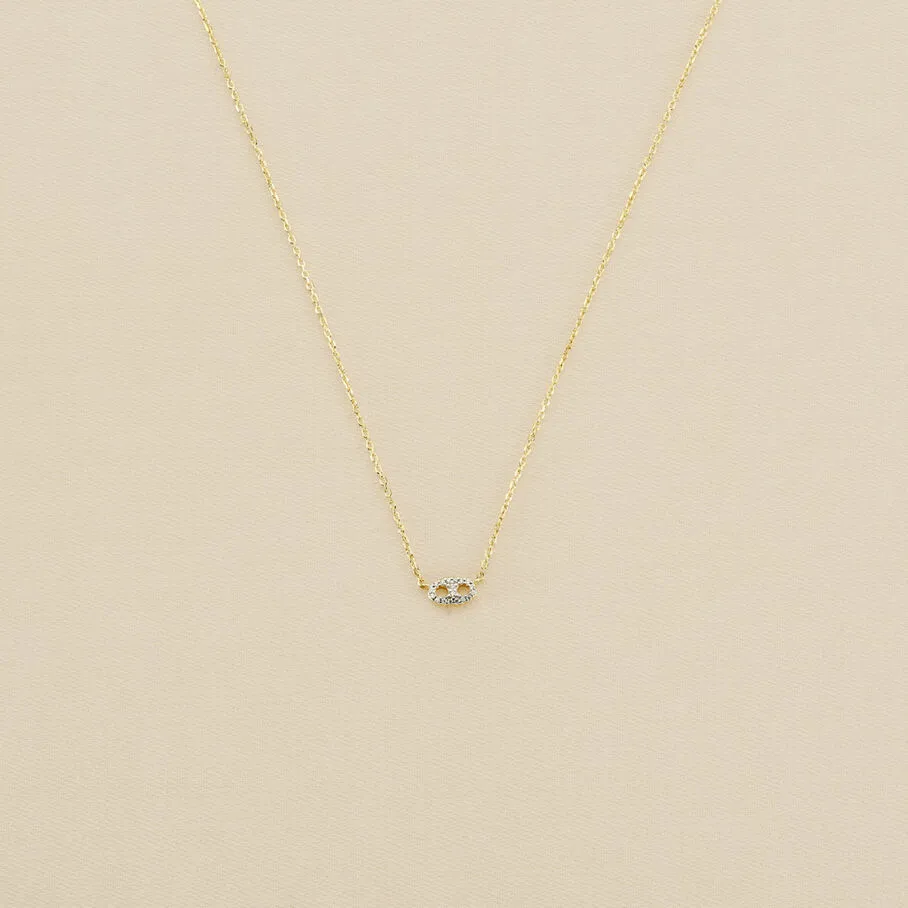 Collier court, en argent véritable doré 750/1000, avec un grain de café pavé sur ruthénium, monté sur une fine chaine maille forçat