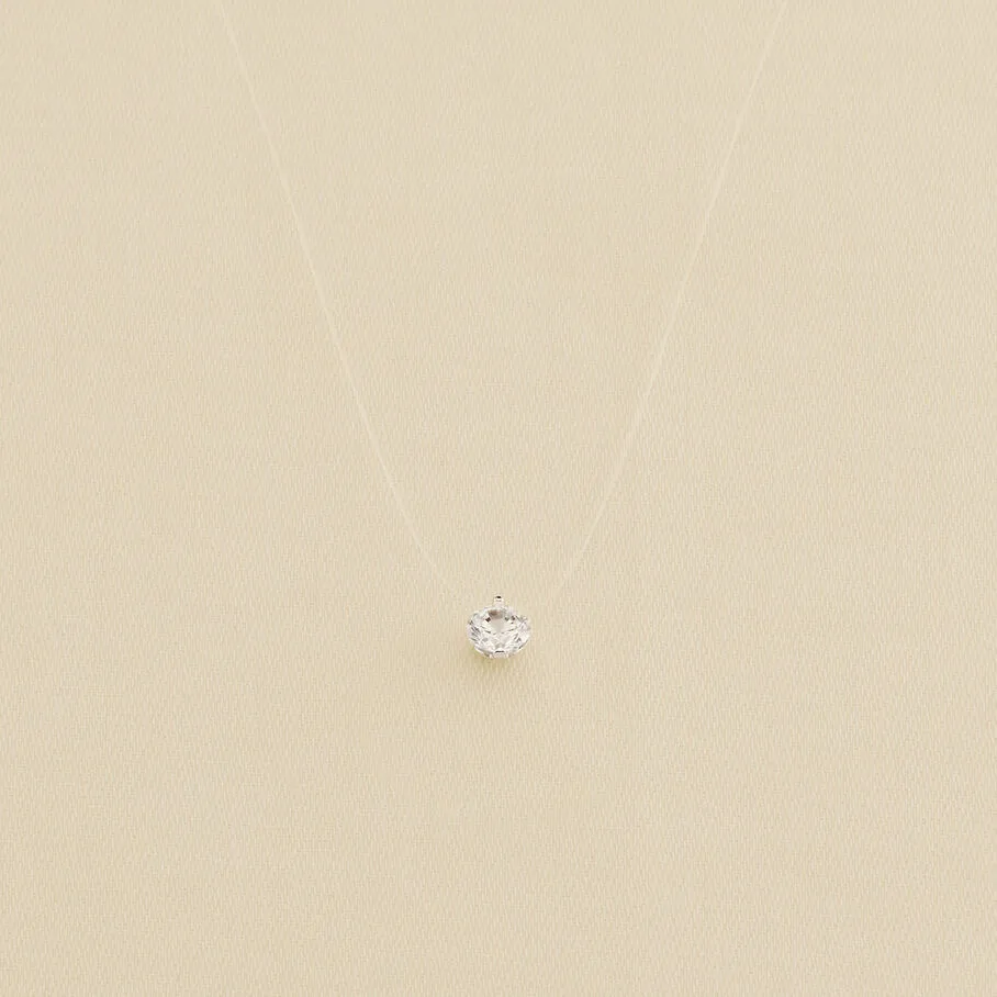 Collier court en argent véritable orné d’un oxyde de zirconium serti sur fil de nylon de 42 cm. Pour un effet délicat tout en transparence.