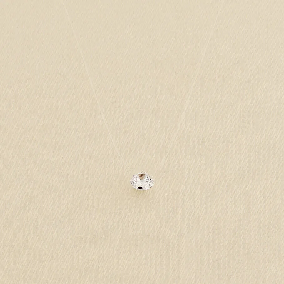 Collier court en argent véritable orné d’un oxyde de zirconium XL serti sur fil de nylon. Pour un effet délicat tout en transparence.