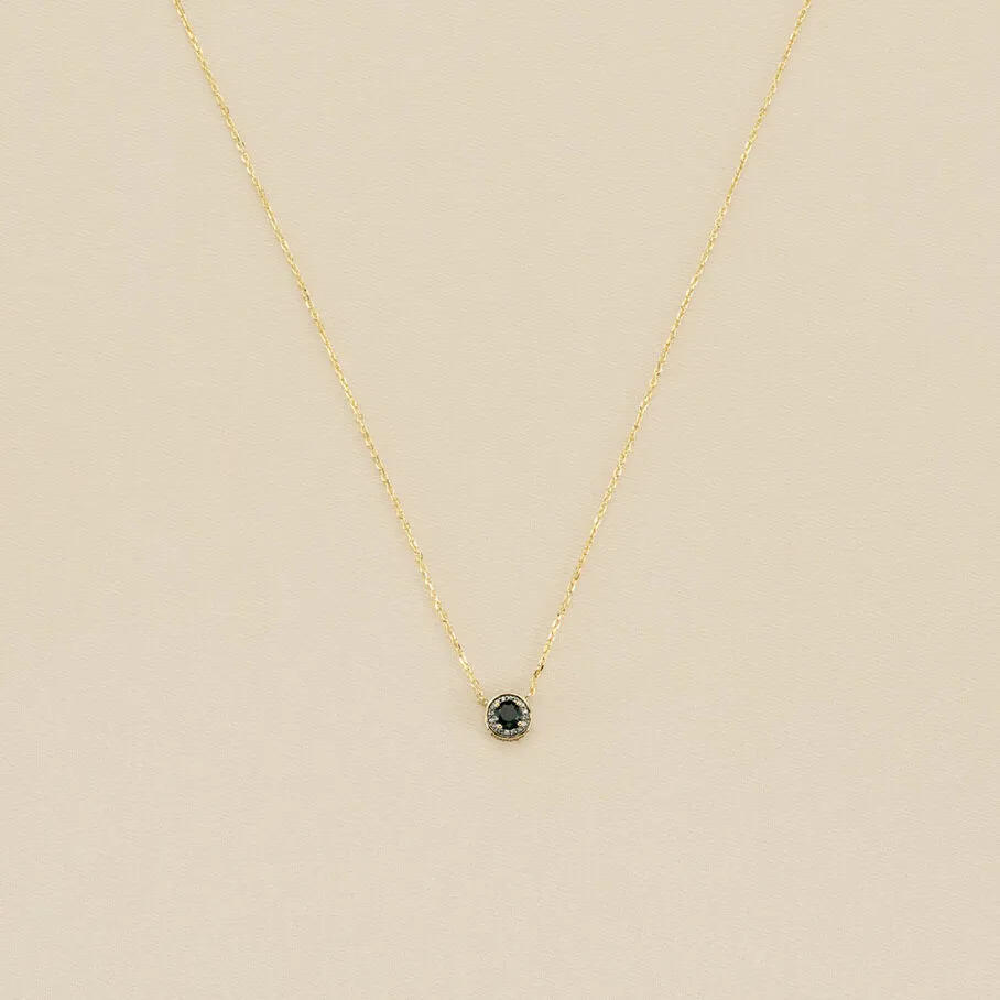 Collier court sur chaine, en argent véritable doré 750/1000, avec un mini oxyde rond autour duquel sont micro sertis des oxydes de zirconium